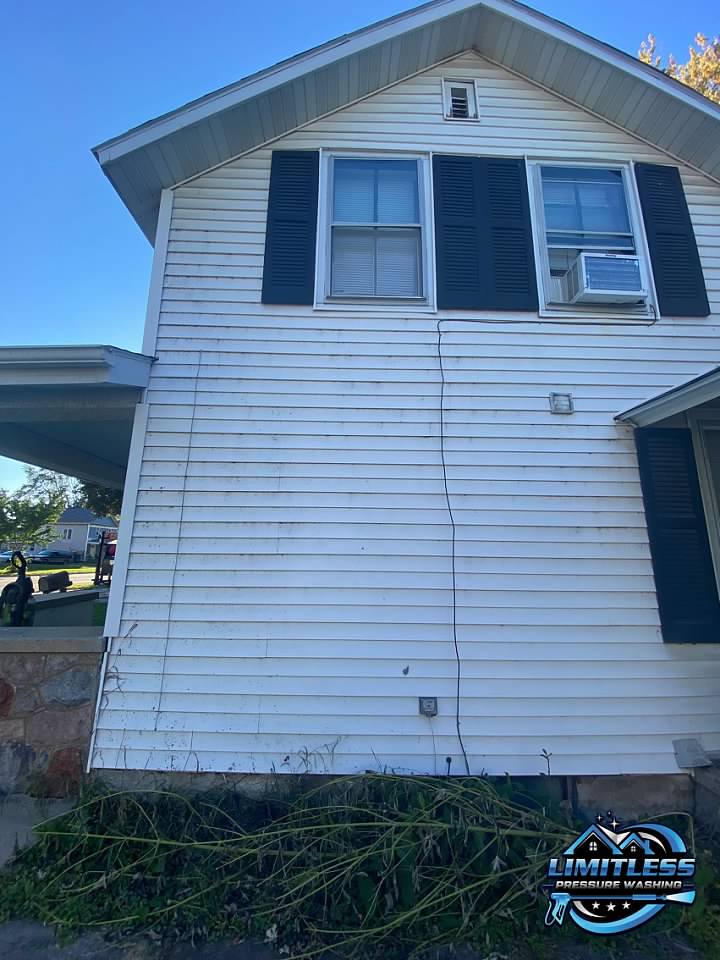 Nothing beats the feeling of a freshly cleaned home exterior, and we had the pleasure of giving this Evansville, WI home just that! The homeowners had started to notice their siding looking dull and streaked with algae and grime, but they weren’t sure how big of a difference a professional wash would make—until they saw the results!